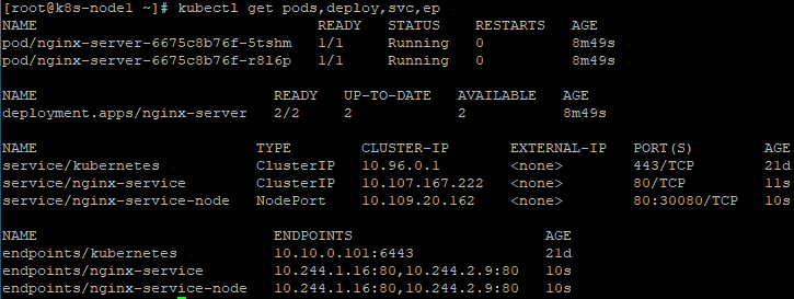 - service의 type에서 nginx가 ClusterIP, NodePort 두 개가 생성되어 있다.