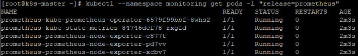 [root@k8s-master ~]# kubectl --namespace monitoring get pods -l "release=prometheus" ## 설치 확인