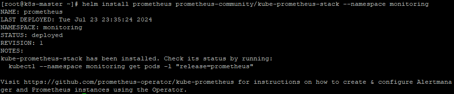 [root@k8s-master ~]# helm install prometheus prometheus-community/kube-prometheus-stack --namespace monitoring